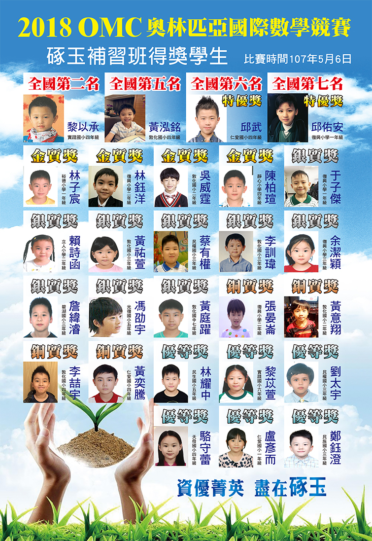 - 狂賀!本校學生參加2018第11屆卓越盃全國數學競賽成績優異 !!!