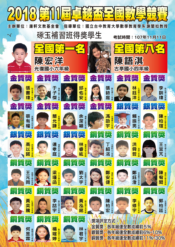 - 狂賀!本校學生參加2018第11屆卓越盃全國數學競賽成績優異 !!!