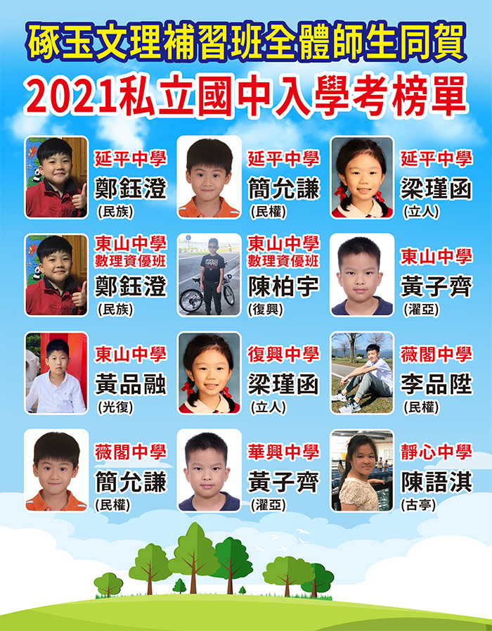 - 狂賀!本校學生參加 2021私立國中入學考成績優異 !!! 全體師生同賀