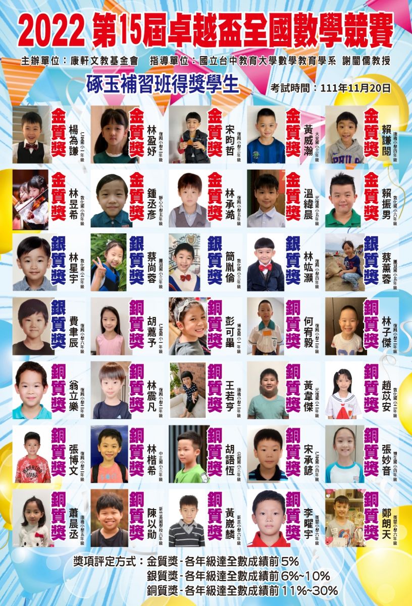 狂賀!本班學生參加【2022第十五屆卓越盃全國數學競賽】成績優異!!!