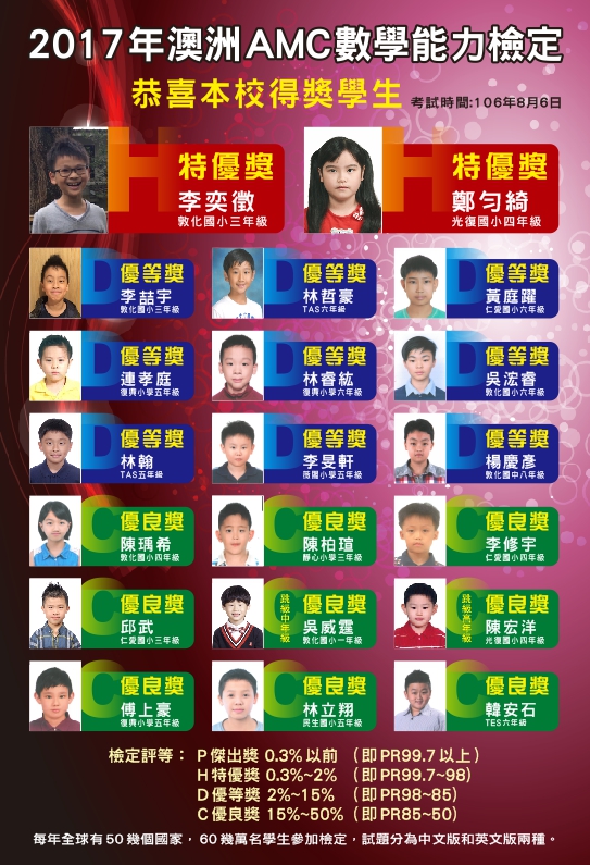 狂賀!!本班學生參加2017澳洲AMC數學能力檢定獲得佳績!!
