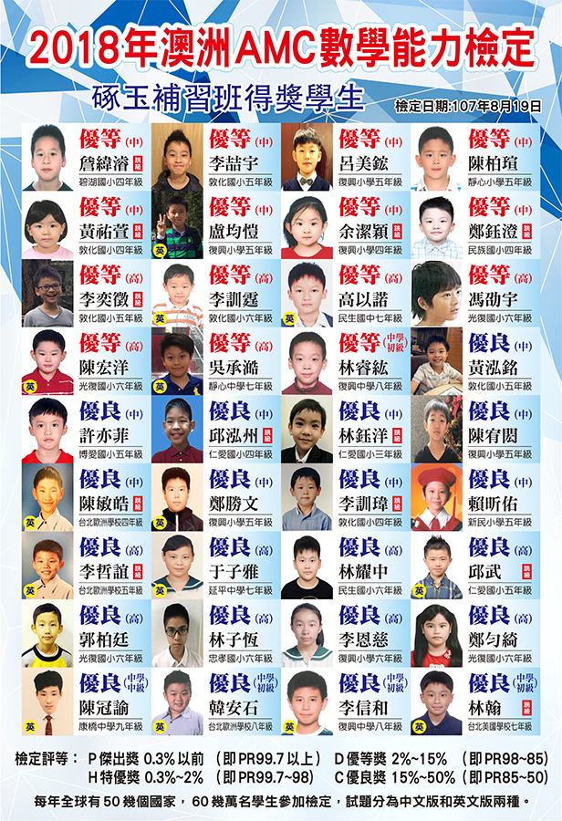 狂賀! 本校學生參加2018年澳洲AMC數學能力檢定成績優異!!
