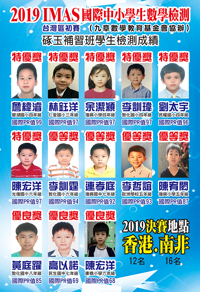 狂賀!本校學生參加 2019 IMAS 國際中小學生數學檢測成績優異 !!!