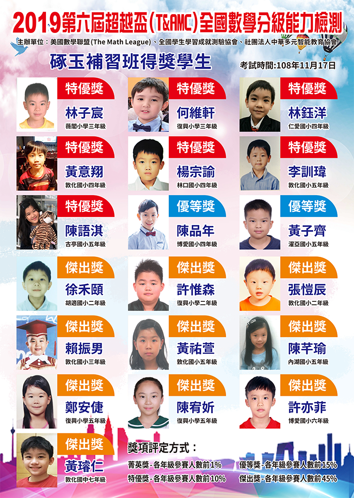 狂賀!本校學生參加2019第六屆超越盃(T&AMC)全國數學分級能力檢測成績優異 !!!