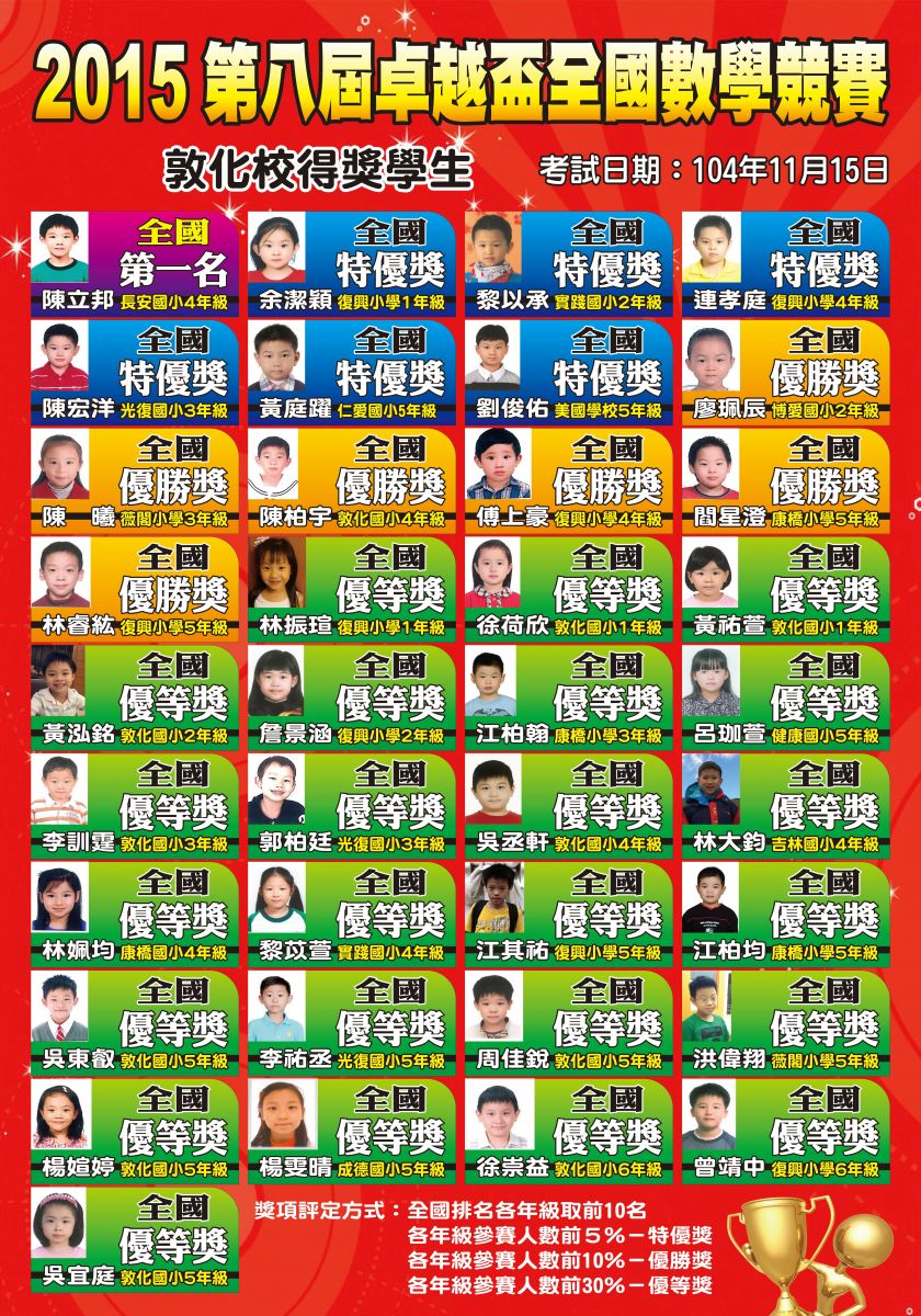 狂賀~2015年第八屆卓越盃全國數學競賽勇奪全國第一名