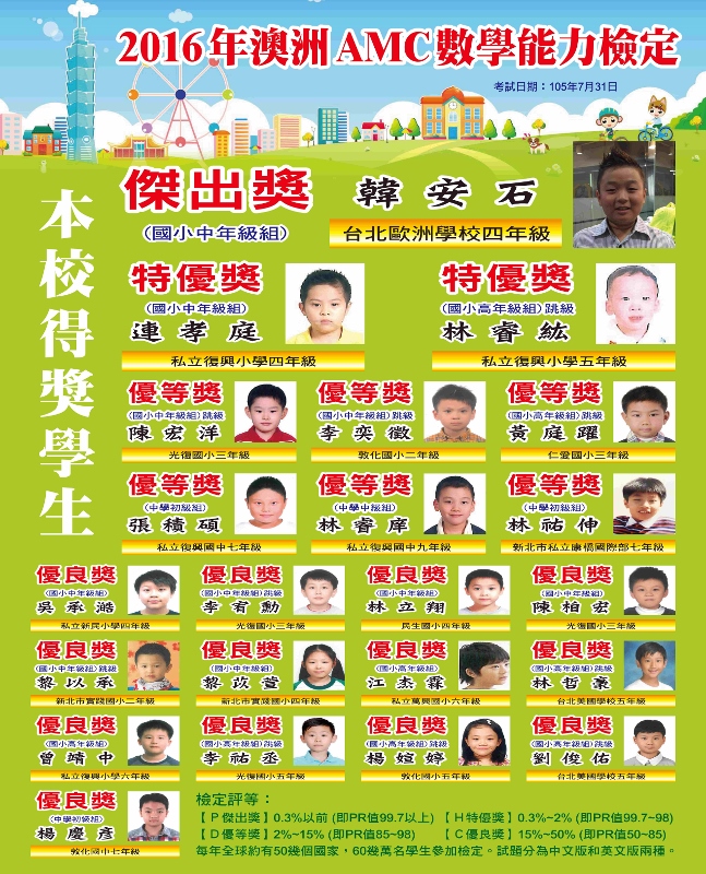 本校學生參加2016澳洲AMC檢定,成績優異!!
