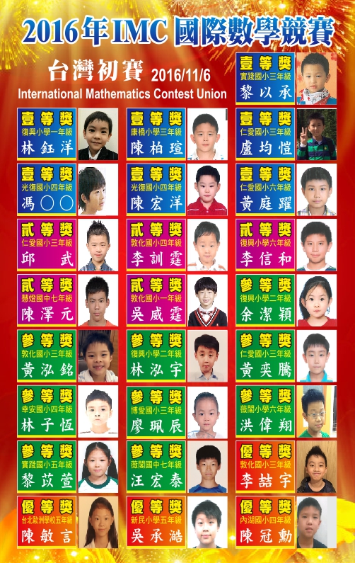 狂賀~本校參加2016年IMC國際數學競賽 成績優異!