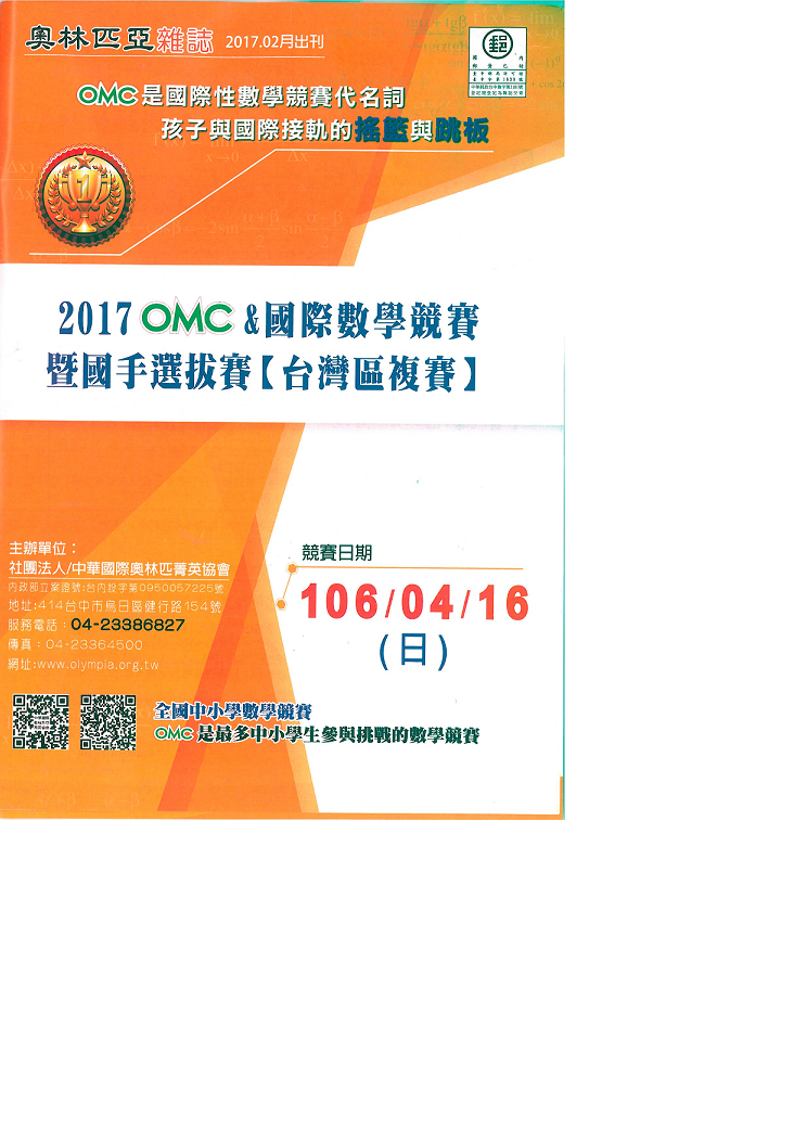 OMC&國際數學競賽暨國手選拔賽【台灣區複賽】~即日起開始報名至3/27