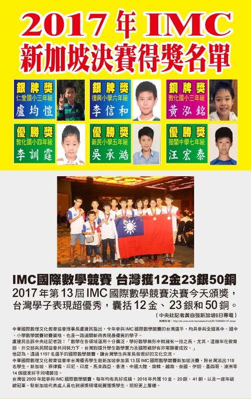 狂賀!!本校6名選手 IMC新加坡決賽獲得佳績!!