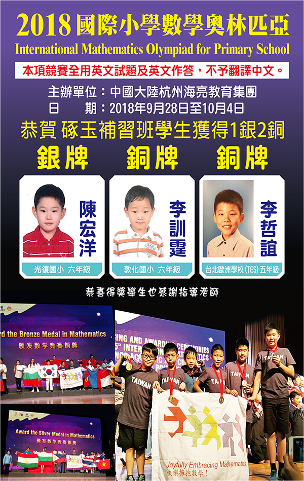 - 狂賀!本班學生參加2018 國際小學數學奧林匹亞競賽獲得1銀2銅