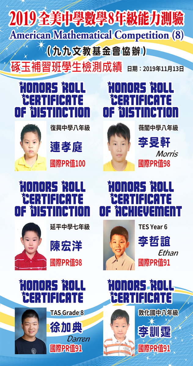 - 狂賀 !本校學生參加【2019全美中學數學8年級能力測驗(2019AMC(8))】成績優異!!!