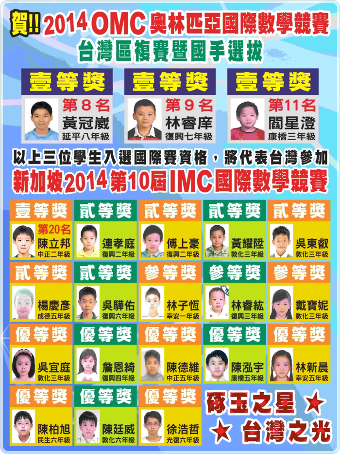 - 狂賀~104年奧林匹亞菁英盃數學競賽得獎名單