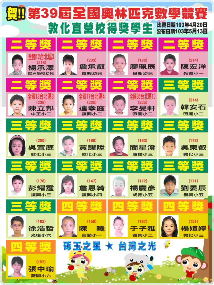 - 狂賀~104年奧林匹亞菁英盃數學競賽得獎名單