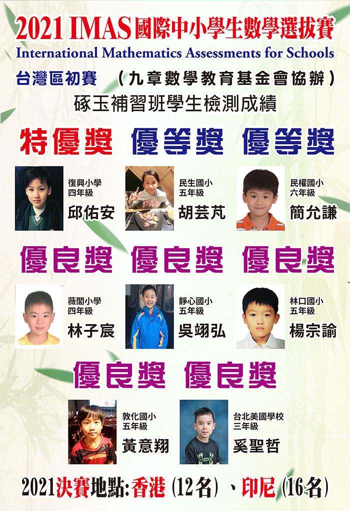 - 狂賀!本校學生參加 2021 IMAS 國際中小學生數學檢測成績優異 !!!