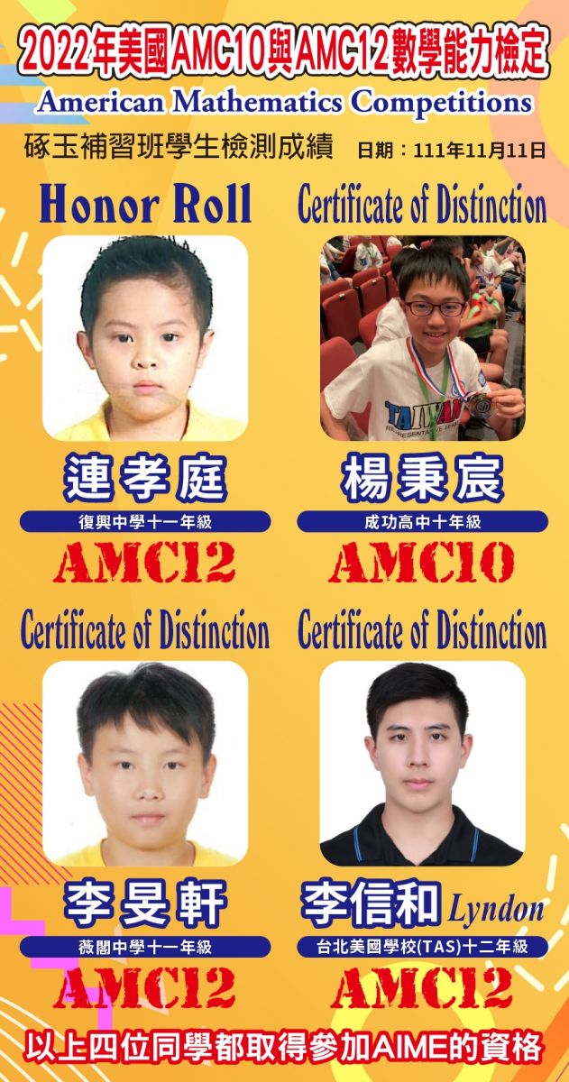 - 狂賀 !本校學生參加【2022全美中學數學10年級能力測驗(2022AMC(10))】及【2022全美中學數學12年級能力測驗(2022AMC(12))】成績優異!!!
