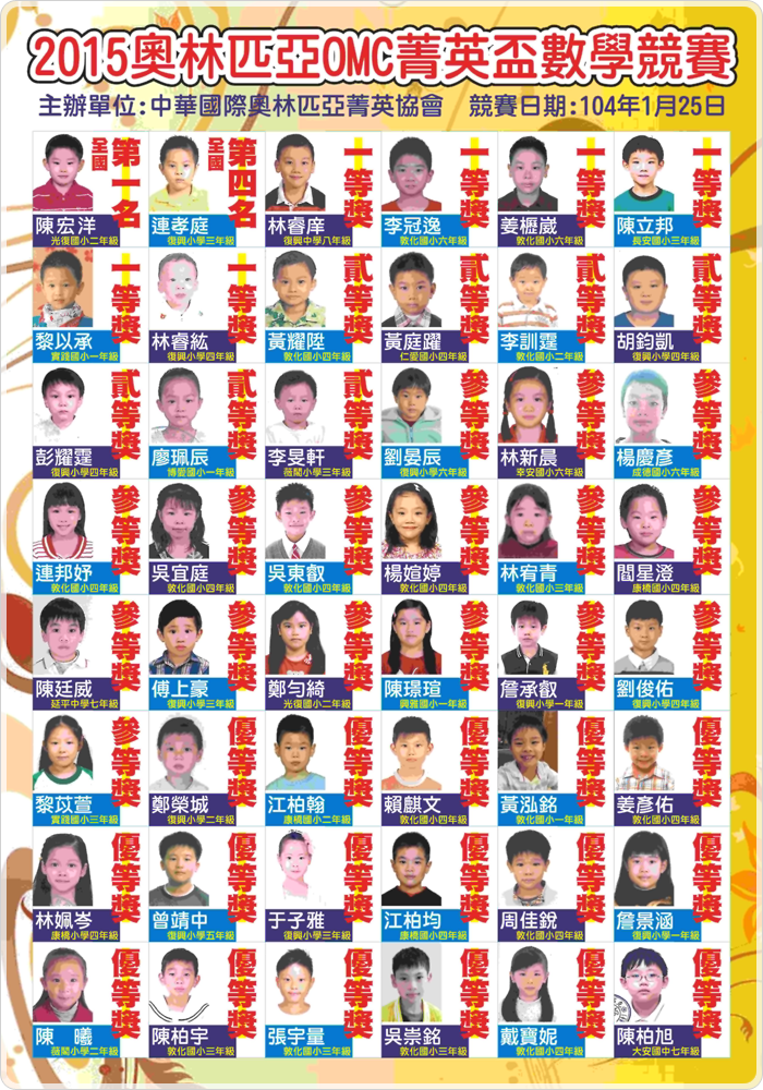 - 狂賀~104年奧林匹亞菁英盃數學競賽得獎名單