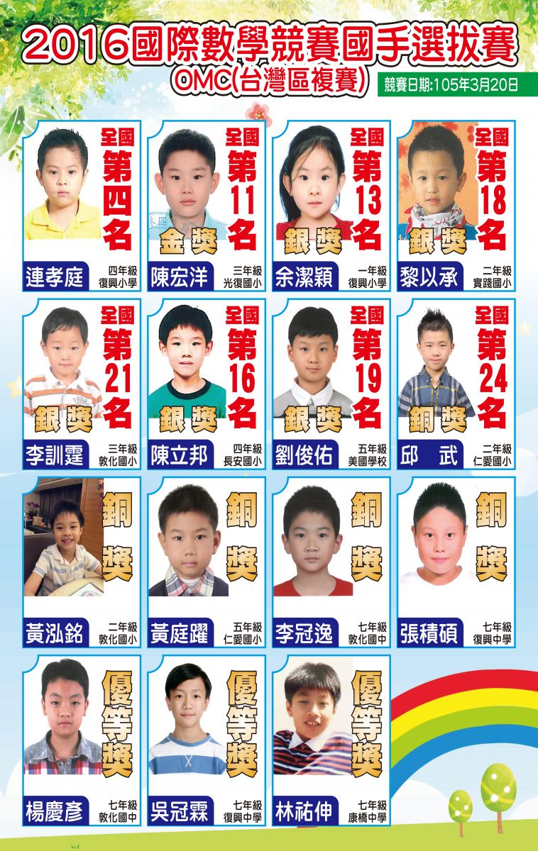 - 2017年OMC奧林匹亞國際數學競賽台灣區複賽得獎學生名單
