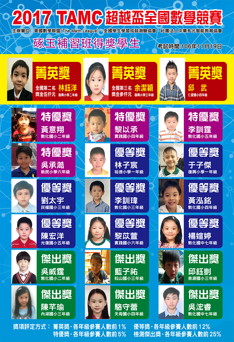 狂賀!本班學生參加2017 TAMC超越盃全國數學競賽成績優異