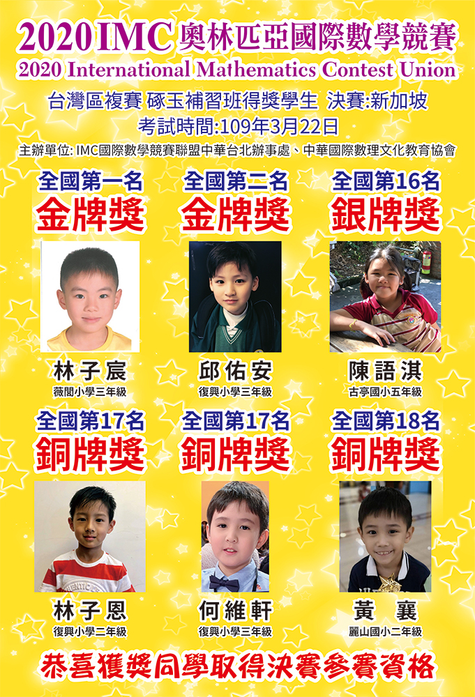 狂賀!本校學生參加 2020 IMC奧林匹亞國際數學競賽台灣區複賽成績優異 !!!