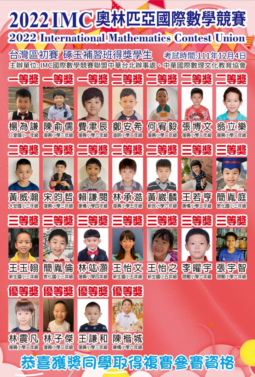 狂賀!本校學生參加 2022 IMC奧林匹亞國際數學競賽台灣區初賽成績優異 !!!